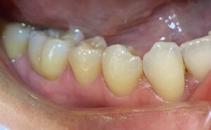 歯に強いストレスが長期間にわたってかかっていたためか、歯と歯茎のきわに楔状にえぐれが生じた状態でした。
