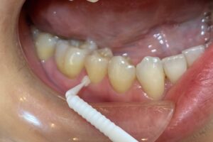 対応として知覚過敏保護の薬剤を歯のしみる部分に塗布いたしました。