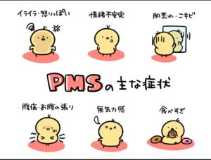 PMS(月経前症候群:生理前3〜10日間に生じるイライラや腹痛、